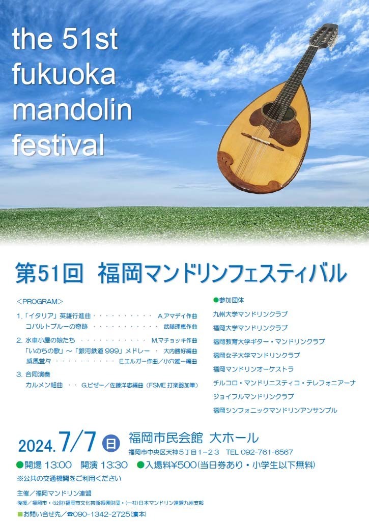 第51回 福岡マンドリンフェスティバル 2024年7月7日(日) | 福岡おでかけ・イベント情報 | 西日本新聞me